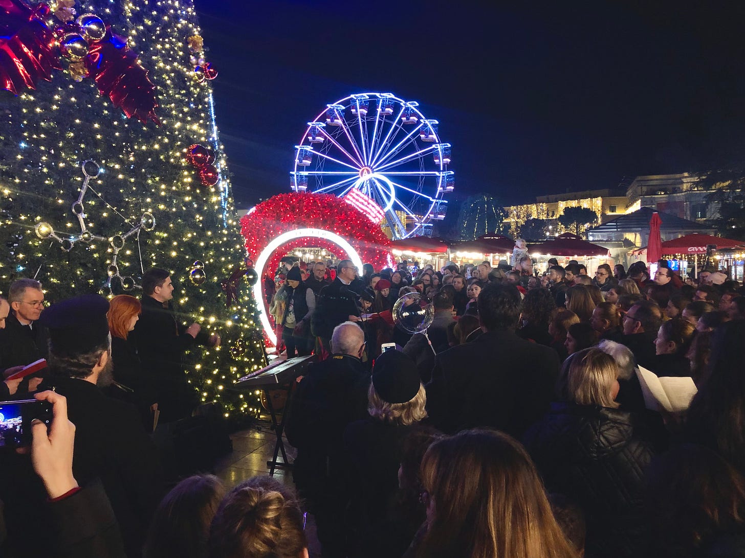 A personal highlight from my month: My dad is coming to the end of his term on the Albanian Inter-religious Council and we had the Council over for an end of year meal a few weeks ago. Albania might be a relatively insignificant country on the world stage, but I can’t think of any other place where the Muslim/Orthodox/Catholic/Protestant religious leaders routinely share a meal together and it was an honor to sit, eat and listen amongst them. All except one grew up under the communist anti-faith regime and it’s a fascinating sight to see these men who have since dedicated their lives to religious work in Albania and their unified desire for Albania to be a nation that is spiritually alive. On the 23rd, the Catholic, Orthodox and Protestant churches held a joint carol-singing service at the city center. Only in Albania!